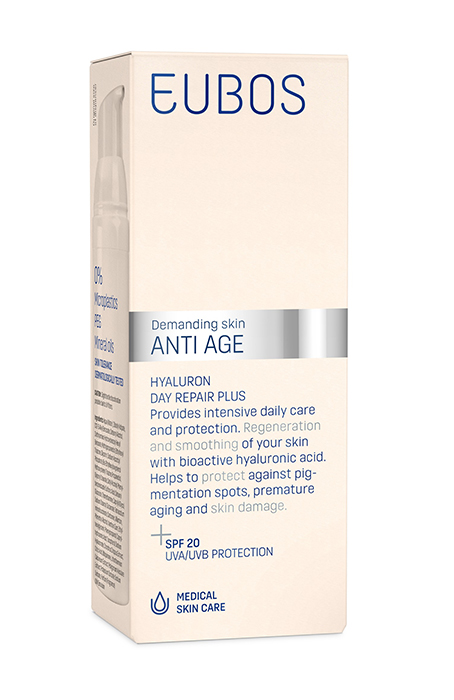 Eubos ANTI AGE linija je visoko kvalitetna in negovalna linija, razvita posebej za zahtevno kožo. Vsak izdelek vsebuje posebno kombinacijo visoko učinkovitih in koncentriranih sestavin. Le te negujejo kožo, zagotavljajo dolgotrajno vlažnost in pomagajo pri glajenju gub. Poleg tega ščitijo pred škodljivimi vplivi iz okolja in pomagajo aktivirati lastne zaščitne procese kože. Rezultat je popolnoma negovana koža, ki izžareva vitalnost od znotraj.